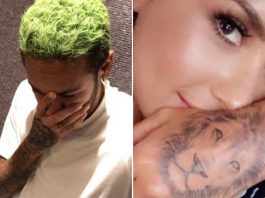 Neymar surge com cabelo verde e “combina” tattoo com Demi Lovato